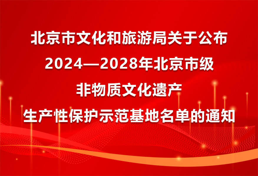 北京市文化和旅游局关于公布2024—2028年北京市级非物质文化遗产生产性保护示范基地名单的通知