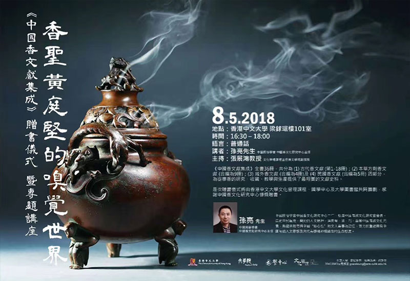 香圣偈二首以记是日于香港中文大学文学院做”香圣黄庭坚的嗅觉世界“之专题演讲并向香港中文大学图书馆赠书。香港中文大学作为香港乃至亚洲首屈一指的高等学府和当代新儒家的主要阵地,先后聚集了钱穆、杨汝梅、林语堂、胡秀英、刘殿爵、饶宗颐、高锟、杨振宁、莫里斯、蒙代尔、姚期智、白先勇等一大批学术巨匠,培养了以史学家余英时、数学家丘成桐、银行家郑海泉等为代表的各界杰出人才。硕儒云集之地,殊胜无比!