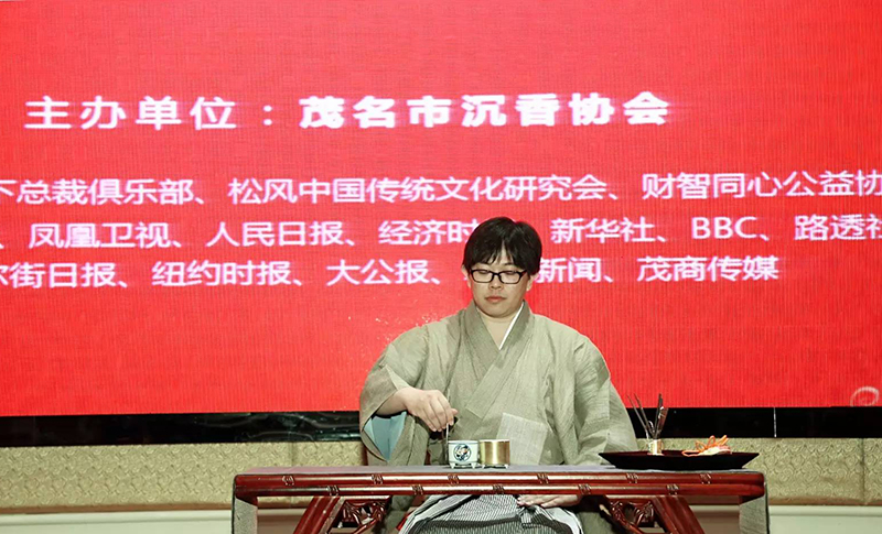 在本次茂名市沉香协会活动中,中国民俗学会中国香文化中心常务副主任、茂名市沉香协会会长谢福有先生还特别邀请了日本著名香道泉山御流传人西际重誉先生进行中日香文化交流,并设席中国香席·松风香席对台交流,加深大家对香道文化的了解和坚定对沉香产业拓展发展新思路的信心。据悉,本次中日香文化交流是目前两国之间最高规格的香道文化交流。