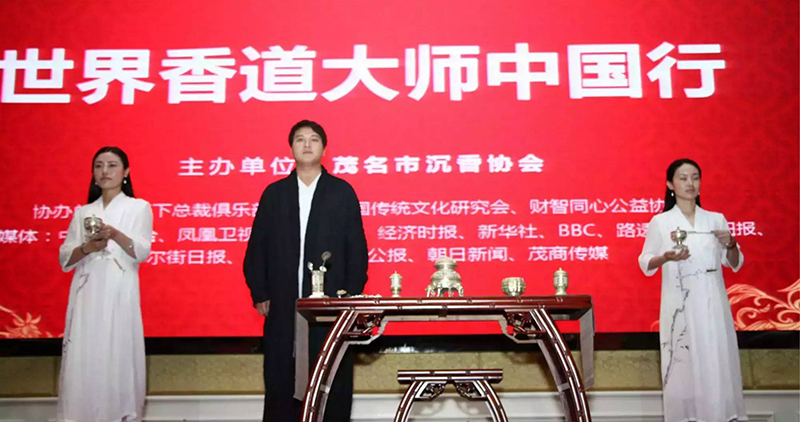 2015年8月1日,由茂名市沉香协会主办,松风中国传统文化研究会、天下总裁俱乐部、财智同心公益协会协办的《世界香道大师中国行暨茂名市沉香协会一周年庆典》在茂名市熹龙国际大酒店隆重举行。茂名市相关领导及全国各地沉香界的友人约300人悉数到场。