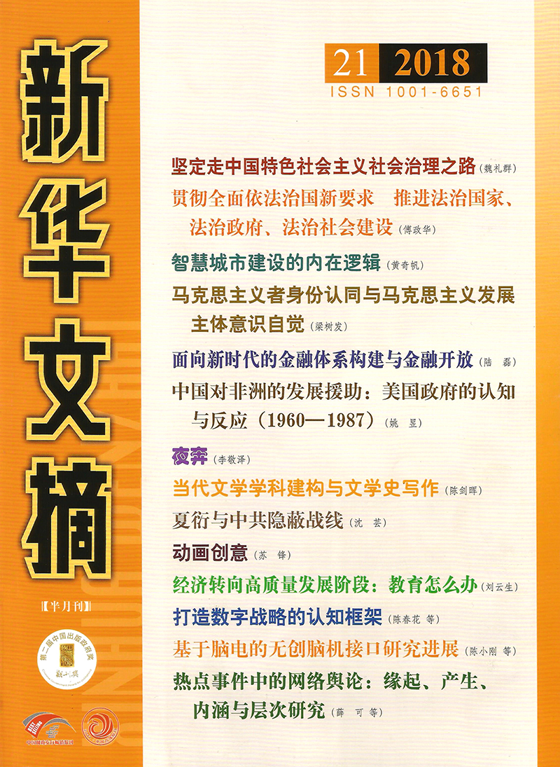 《新华文摘》由人民出版社主办、《新华文摘》杂志社编辑出版的大型理论性、综合性、资料性文摘类权威期刊(也称为“二次文献”);其广涉千家报刊,精取天下文章,编选大量弘扬时代主旋律、荟萃人文学术精华、凝聚中国经验的优秀文章,为广大读者提供了大量哲学社会科学新观点、新资料、新方法和文艺佳作。