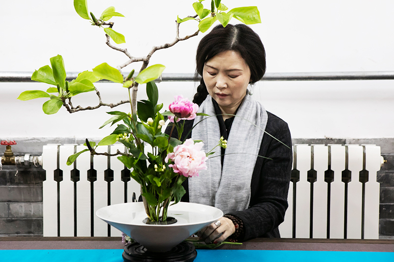 中国插花萌芽于春秋战国时期,距今已有三千多年历史。以花传情,借花抒怀明志,以花悟道,利用花草来对自然歌颂。本次花道花材选取了天台山慈善寺楸树花和时令花材。