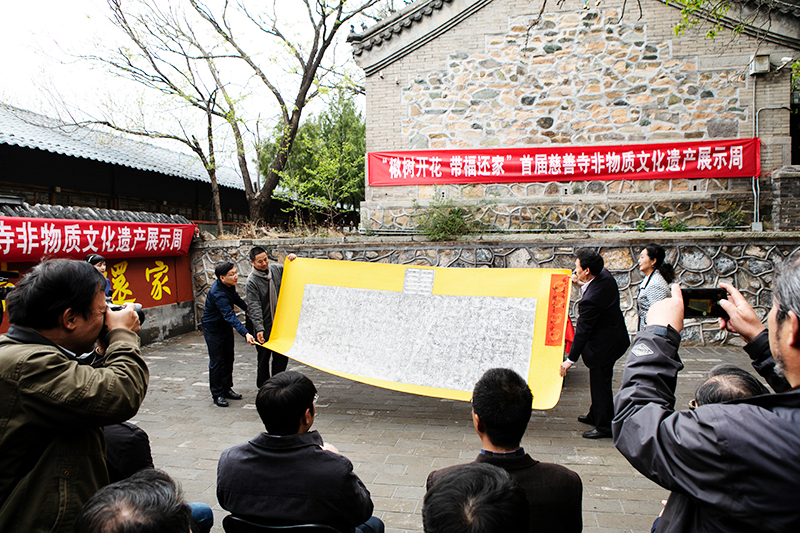 石景山区非物质文化遗产保护中心和慈善寺文保所通力合作,展览展示古碑拓片与非遗项目的相辅相成,增进群众对石景山区非物质文化遗产的深入了解。通过集中展示石景山非遗项目产品实物、民间文学、2022年冬奥会等相关内容,对非遗项目的文化内涵进行解读,引导公众深化对非遗保护传承工作的认识。