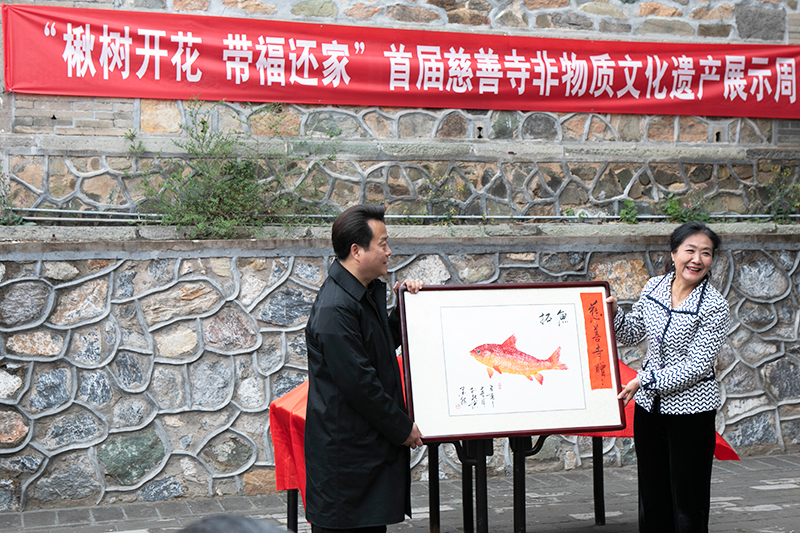 慈善寺文保所向石景山区非物质文化遗产保护中心赠送鱼拓片