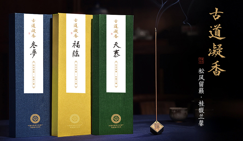 “古道”寓意北京永定古河道、京西古香道和古商道,是京城人文、自然与历史的集萃之所在。石景山地处京西,山地林业资源丰富,本土香料种类多样。中国民俗学会中国香文化研究中心采用古香方以石景山区非物质文化遗产“和香制作技艺”研制“古道凝香”系列产品:福临、冬梦和天泰。