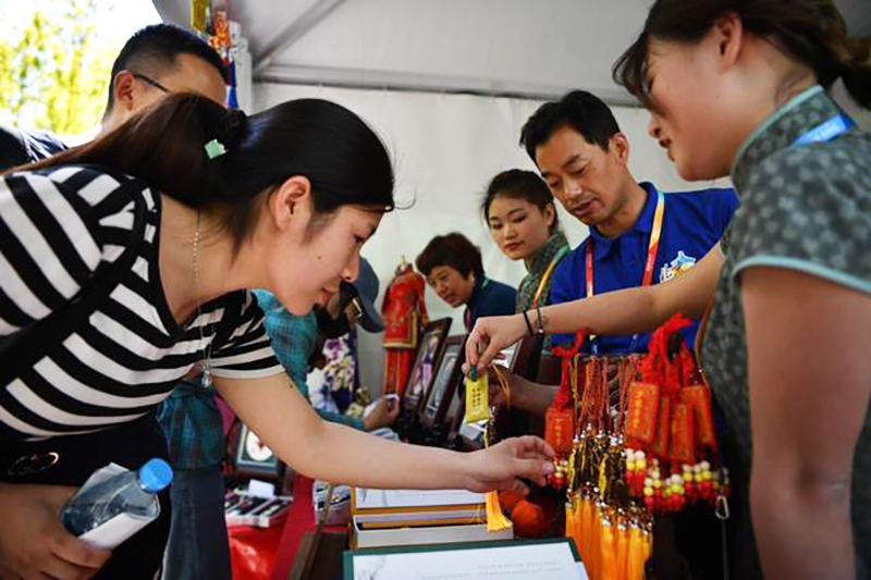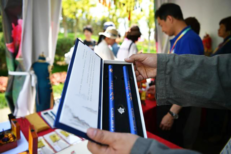 在“北京日”非遗展示区,石景山区市级非遗项目“京式旗袍制作技艺”和区级非遗项目“和香制作技艺”的展示彰显了北京丰富、深厚的文化底蕴。“和香制作技艺”展台上展出了古道凝香系列线香产品和古朴典雅的香袋、香珠、香扇等文创产品。