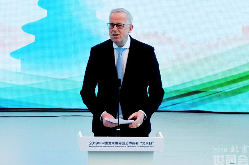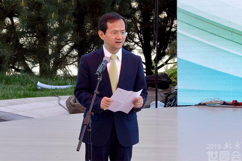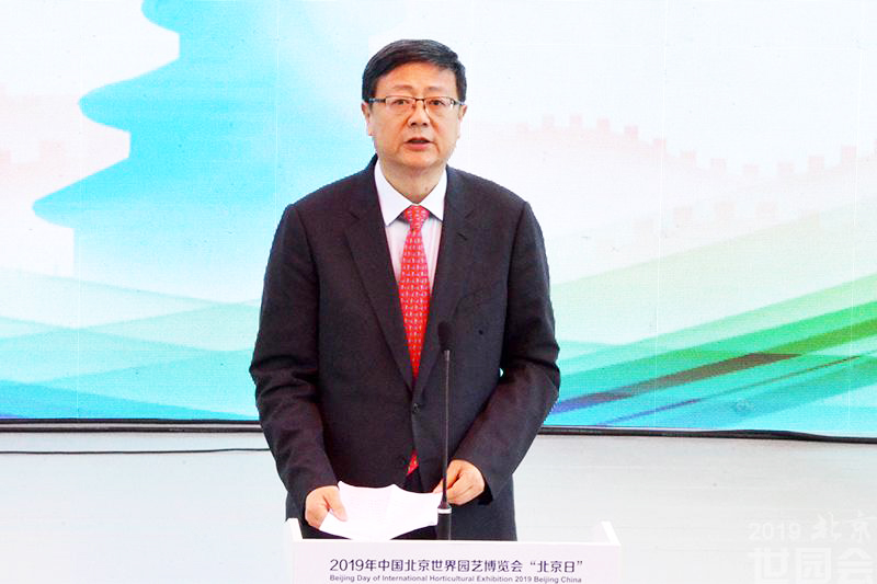2019年中国北京世界园艺博览会“北京日”活动5月1日上午在世园会妫汭剧场举行开幕式。国际园艺生产者协会主席伯纳德 · 欧斯特罗姆,国际竹藤组织董事会联合主席、中国花卉协会会长、北京世园会组委会副主任委员、北京世园会执委会执行主任江泽慧,中国贸促会会长、北京世园会组委会副主任委员、北京世园会执委会执行主任高燕分别致辞。北京市市长陈吉宁致辞并宣布“北京日”开幕,北京市副市长殷勇主持开幕式。中国贸促会副会长陈洲、北京市政府秘书长靳伟出席。