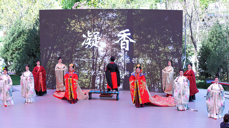 中国民俗学会中国香文化研究中心主任孙亮和石景山“艺枫模特队”共同表演了中国传统香文化行香仪式和传统汉服展示,节目采用了石景山区原创歌曲《凝香》,词作者:何京江,曲作者:赵新,汉服原创设计:汉衣坊。其中行香仪式表演用到的“古道凝香·天泰”是中国香文化研究中心采集天泰山的香料植物结合古香方以石景山非物质文化遗产“和香制作技艺”所研制,“古道凝香·天泰”寓意人民幸福,天下和泰。