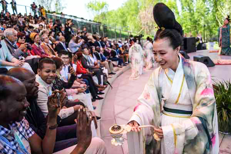 开幕式上,来自塞尔维亚、立陶宛和中国的艺术家为观众奉上了功夫舞蹈、合唱、球技、行香仪式、汉服展示、民间摇滚、集体空竹等特色鲜明的文艺节目。共有6个国际组织、49个国家和地区、7个中央机构,10个北京市委办局、8个省区市贸促机构的200余名代表以及100余名企业家和20余位中央和北京市属媒体记者出席开幕式。