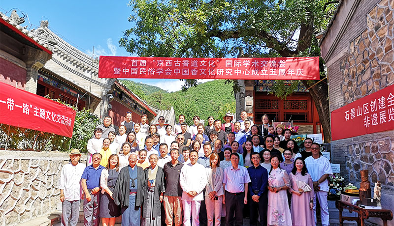 2019年8月27日,由中国民俗学会中国香文化研究中心主办,石景山区文化和旅游局、石景山区非遗中心和石景山区慈善寺文物保护所的大力支持的首届“京西古香道文化”国际学术交流会暨中国民俗学会中国香文化研究中心成立五周年庆活动在北京市石景山区天泰山慈善寺隆重举行。中国民俗学会副会长陈泳超、刘晓峰、李刚,日本著名香道教育家、汉语言文学研究者,韩国香道协会会长,中国香港茶文化院院长、香港中文大学教授,石景山区外事侨务办,五里坨街道办事处及石景山区文化和旅游局负责人等参加活动。