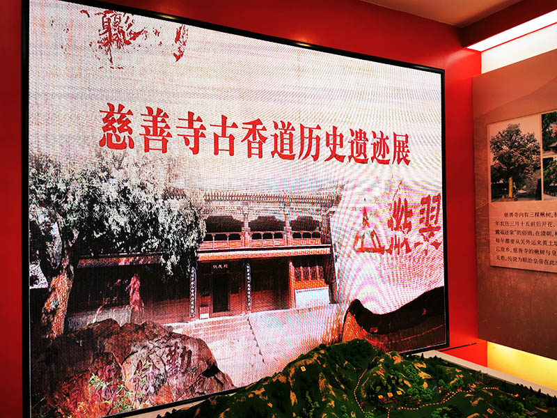 活动举办地石景山区慈善寺曾经是京西古香道上香火极盛的寺庙之一也是西山永定河文化带上一颗明珠,拥有着丰富的历史文化内涵,是以京西山地为核心的民间香文化的重要代表。京西地区的香文化依托民间信仰的用香、进香习俗,形成了一个包括圣山祠庙、古香道、香市香坊、民间香会组织、朝顶进香庙会等在内的香文化集群。以妙峰山香会、天泰山香会为代表的行香走会习俗,历经数百年变迁发展,在今天重新焕发出新的光彩。本次展览通过沙盘及多媒体效果带领广大游客穿越“时光隧道”——重走古香道,再现昔日繁华盛景。