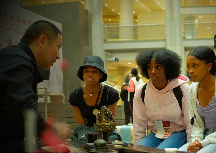 当地时间11月22日上午,由北京市人民政府和华盛顿市政府主办,北京市文化和旅游局承办的“北京日”文化庙会在华盛顿罗纳德里根大厦举办。来自北京的非物质文化遗产传承人现场展示了剪纸、团扇、景泰蓝和旗袍盘扣制作技艺,吸引了在大厦内工作的美国联邦政府雇员和华盛顿市民上千人在现场观看和体验。