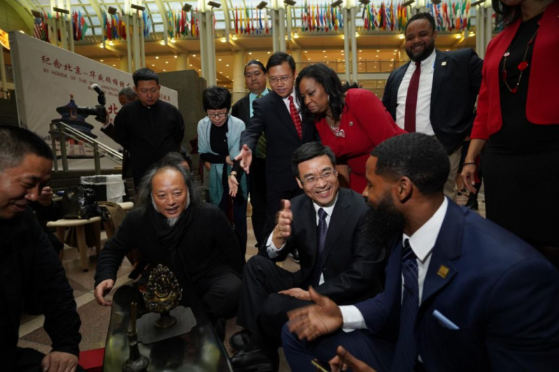 “琴书画茶香”五道展示将中国传统文化元素融入当代空间设计,营造具有中华文化韵味的美学空间,诠释了中国传统文化精神。“魅力北京”图片展展出具有古都风貌和现代风情的北京图片40张,吸引在场观众驻足观看。北京市委常委、常务副市长林克庆,华盛顿市行政长官拉加德·杨和华盛顿市务卿金伯莉·巴塞特出席活动。