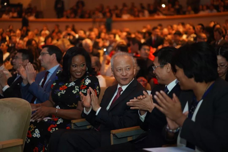 当地时间11月21日晚,纪念北京与华盛顿缔结友好城市35周年“高山流水”古琴专场音乐会在美国华盛顿罗纳德里根大厦剧场举行。正在出访的北京市委常委、常务副市长林克庆与中国驻美国大使崔天凯,华盛顿市市长穆丽尔·鲍泽和华盛顿市务卿金伯莉·巴塞特共同出席并观看演出。演出由北京市人民政府、华盛顿市政府共同主办,北京市文化和旅游局承办。
