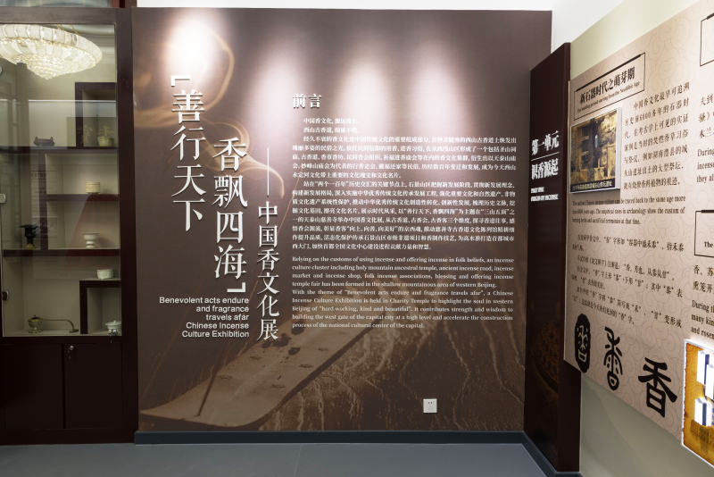 站在“两个一百年”历史交汇的关键节点上,石景山区文化和旅游局把握新发展阶段、贯彻新发展理念、构建新发展格局,深入实施中华优秀传统文化传承发展工程,强化重要文化和自然遗产、非物质文化遗产系统性保护,推动中华优秀传统文化创造性转化、创新性发展,梳理历史文脉,挖掘文化基因,擦亮文化名片,展示时代风采,联合中国民俗学会中国香文化研究中心以“善行天下、香飘四海”为主题在“三山五顶”之一的天泰山慈善寺举办中国香文化展,从古香道、古香会、古香客三个维度,探寻香道往事,感悟香会源流,彰显香客“向上、向善、向美好”的京西魂,推动慈善寺古香道文化陈列馆精耕细作提升品质,活态化保护传承石景山非遗项目和香制作技艺,为高水准打造首都城市西大门、加快首都全国文化中心建设进程贡献力量和智慧。