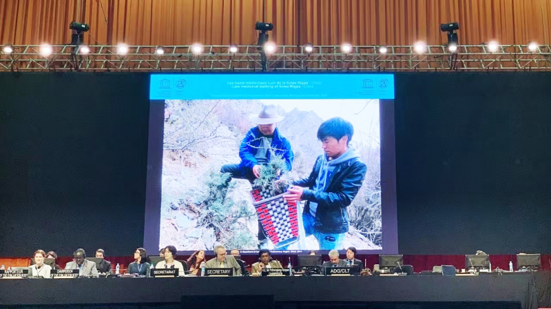 联合国教科文组织保护非物质文化遗产政府间委员会第13届常会于2018年11月26日至12月1日在毛里求斯首都路易港召开。当地时间11月28日下午,委员会经过评审,通过决议,将中国申报的“藏医药浴法——中国藏族有关生命健康和疾病防治的知识与实践”列入联合国教科文组织人类非物质文化遗产代表作名录。(现场会议)