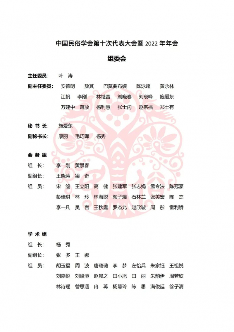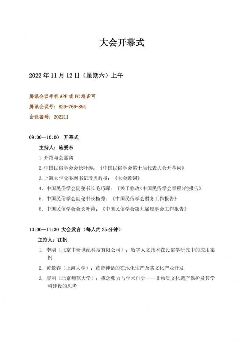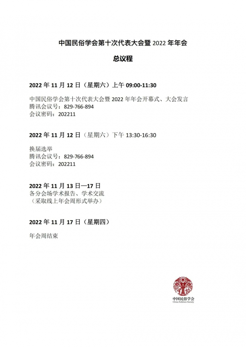 中国民俗学会第十次代表大会暨 2022 年年会议程