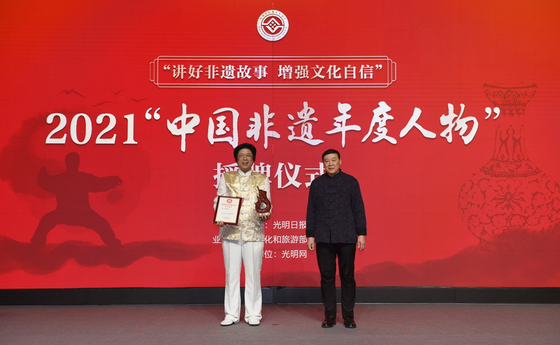 2月21日,以“讲好非遗故事增强文化自信”为主题的2021“中国非遗年度人物”授牌仪式暨2022“中国非遗年度人物”100人候选名单发布仪式在中国工艺美术馆·中国非遗馆举行。