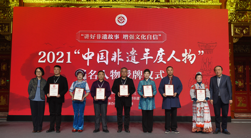 (图为2021“非遗年度人物”提名人物授牌仪式现场)