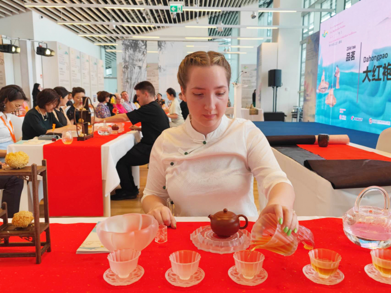 大学生志愿者为嘉宾们展示茶道 翟朝辉摄