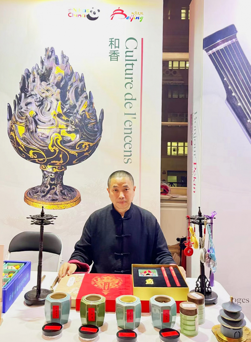 北京“和香制作技艺”代表性传承人孙亮现场介绍了中国香文化的历史底蕴与当代传承,并邀请大家亲手制作香囊,吸引了嘉宾争相体验。