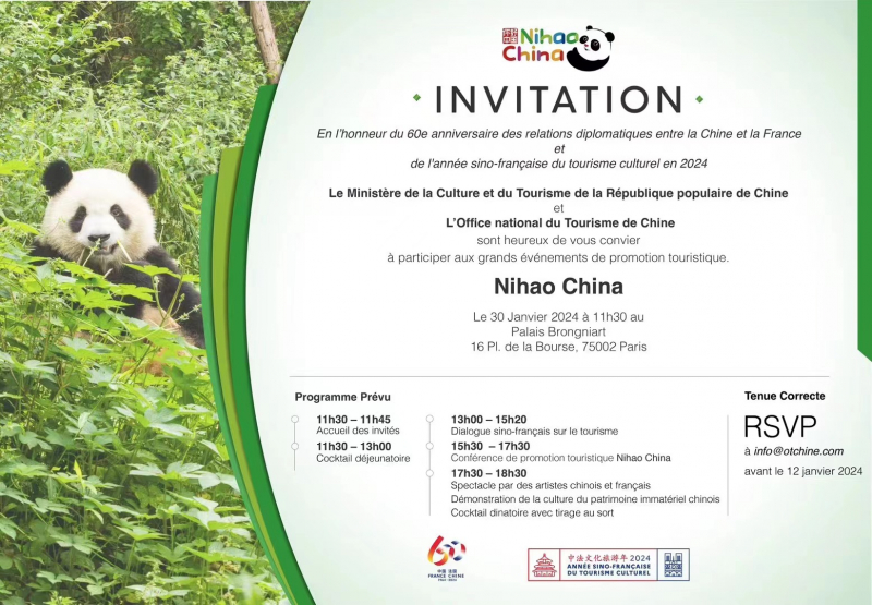 新华社巴黎1月30日电(记者唐霁)由中国文化和旅游部、中国驻法国大使馆主办,中国驻法国巴黎旅游办事处承办的“你好!中国”旅游推介会30日在巴黎布龙尼亚宫举行。