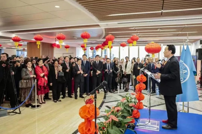 当地时间2月2日下午,联合国粮食及农业组织(粮农组织)在位于意大利罗马的总部举办中国农历春节招待会。总干事屈冬玉博士、中国驻意大利大使贾桂德、中国常驻联合国粮农机构代表、大使广德福与各成员国常驻代表处使节、各国驻意使节、国际组织负责人、粮农组织高管等600多人出席活动。活动现场,红彤彤的灯笼连成串,吉祥的中国结挂起来,来宾欢声笑语不断,呈现出一片浓厚的春节喜庆氛围。