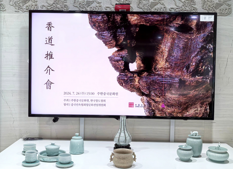 2024年7月24日第三届中国香道推介会在首尔中国文化中心拉开序幕,本次活动由首尔中国文化中心、韩国香道协会主办,中国民俗学会香文化专业委员会协办。驻韩中国大使馆参赞兼首尔中国文化中心主任沈晓刚、驻朝中国大使馆参赞于冰,韩国香道协会荣誉会长郑金丹、韩国香道协会理事长李相均等韩国文化界近60位嘉宾出席本次活动。