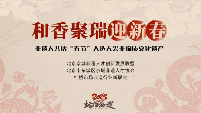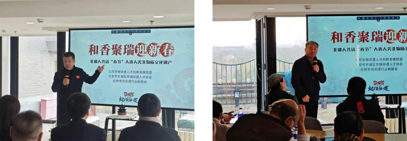 2025 年 1 月 11 日,由北京京城非遗人才创新发展联盟、北京市东城区京城非遗人才协会、红桥非遗行业新联会联合主办的 “和香聚瑞迎新春 —— 非遗人共话‘春节’入选人类非物质文化遗产” 活动在红桥市场举办,非遗代表性传承人、非遗从业者和非遗小志愿者欢聚一堂,共同回溯春节文化的深厚渊源,畅谈传承发展之路,精心描绘非遗产业的宏伟蓝图。北京京城非遗人才创新发展联盟秘书长、北京市东城区京城非遗人才协会会长、红桥非遗行业新联会会长杨建业主持活动,北京市民协副主席钟连盛、常弘,东城区文旅局非遗科科长张佳宁,红桥市场党总支副书记、总经理金伟,中国科学院自然科学史研究所副研究员李劲松等出席。