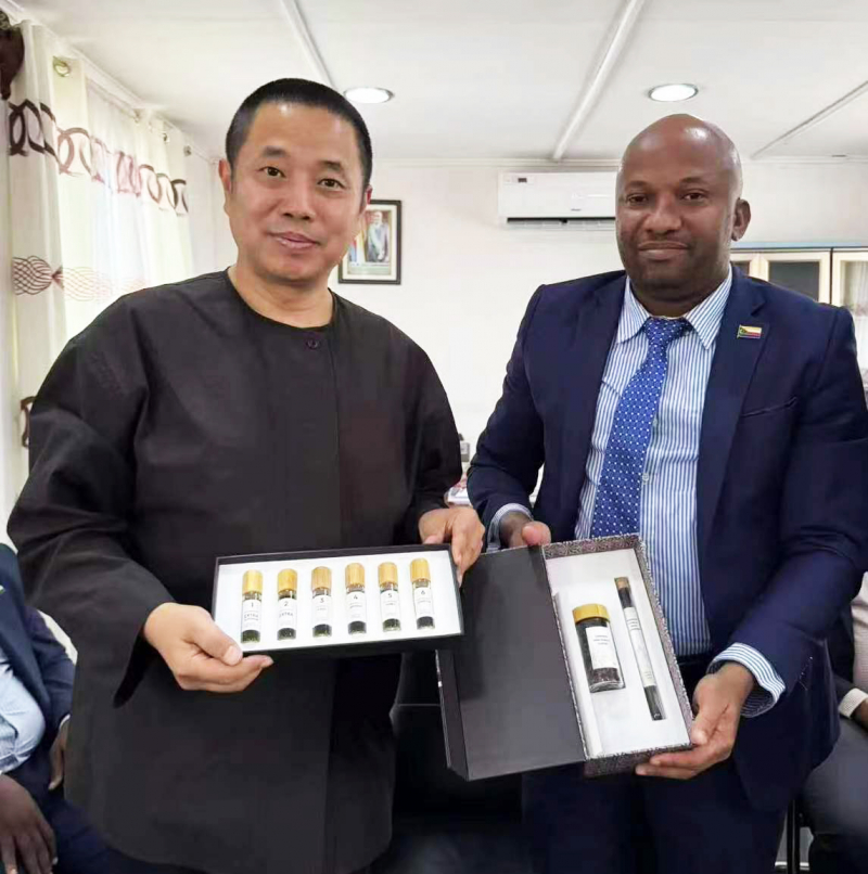 科摩罗农业、渔业及手工部部长丹尼尔向孙亮团长赠送科摩罗产的香料和精油