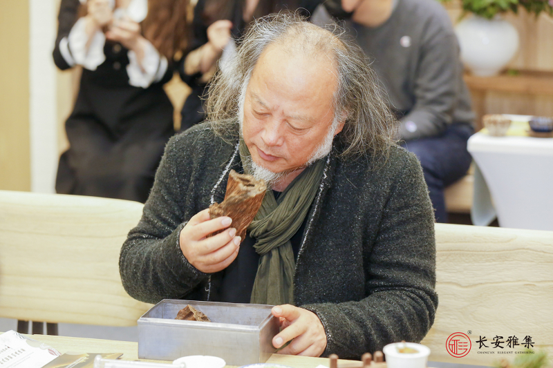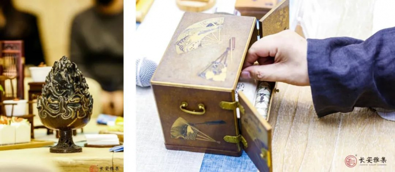 孙亮先生还在现场展示了博山炉、法门寺仿制的行炉和莳绘香盒,并讲述了其使用方法、花纹特点等,引经据典地讲解,让观众了解四大名香背后的历史渊源。在闻香环节中,一呼一吸,芬芳馥郁,现场弥漫在馨悦之中,使人静下心来体会人生和感悟生活。